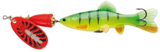 En mjuk kropp som jagar spinnaren, uppfattas som distraherad och ett lätt byte. Som vanligt med Vibrax så får du en spinnare som roterar mycket lätt i vattnet utan att tvinna linan.